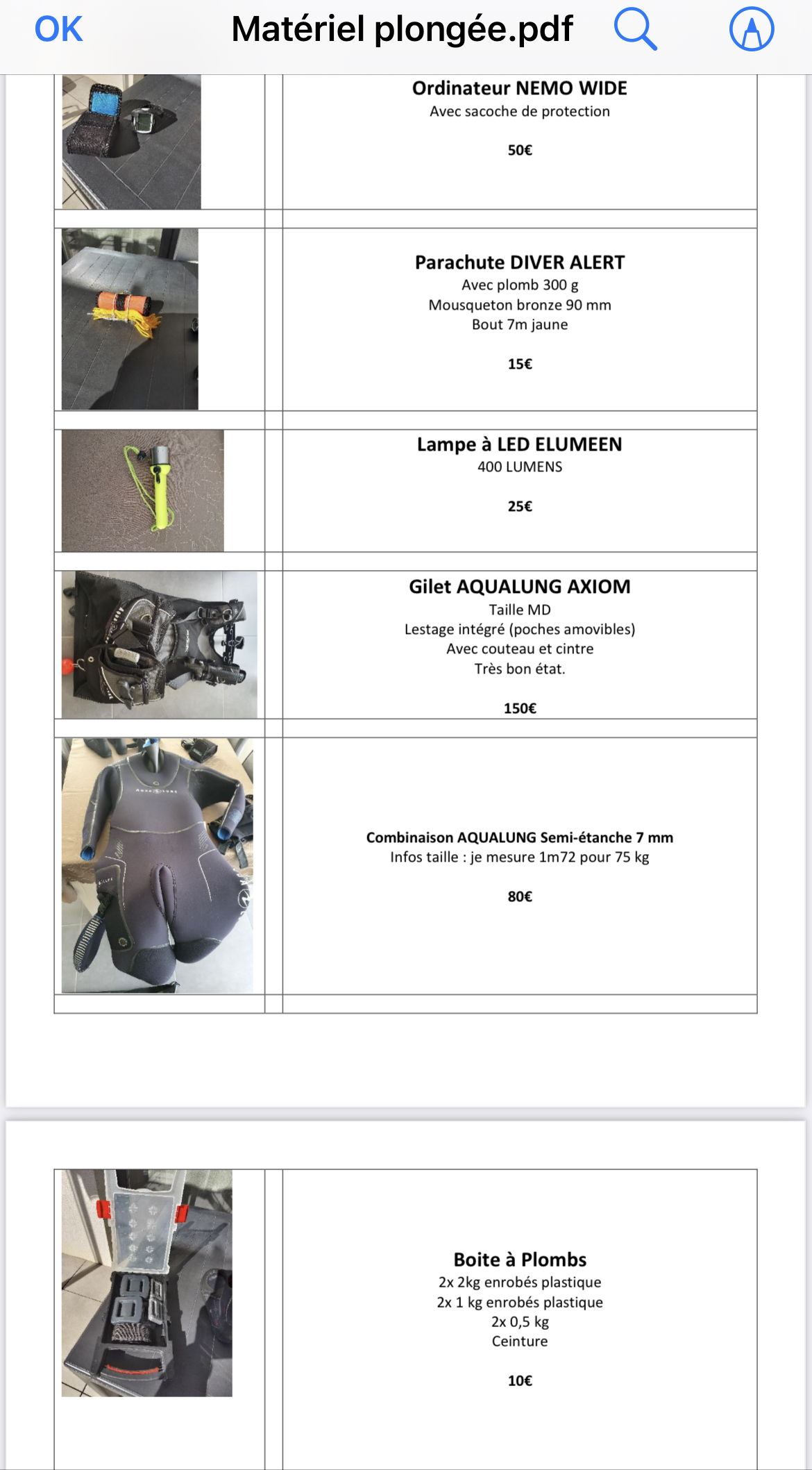 Le vendeur est un plongeur qui arrête la plongée . J’ai acheté du matériel chez lui